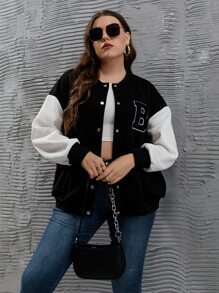 Cazadora tipo bomber con parche de letra de color combinado de hombros caídos