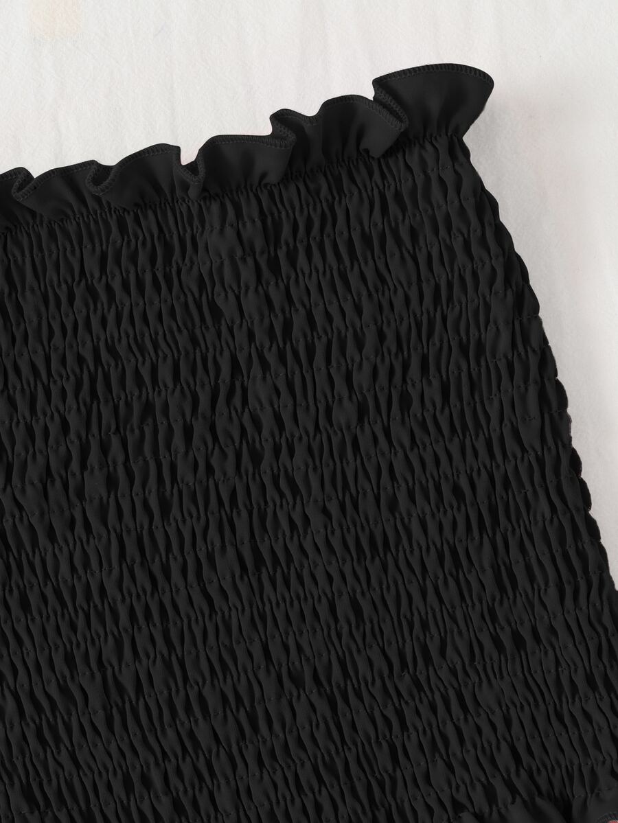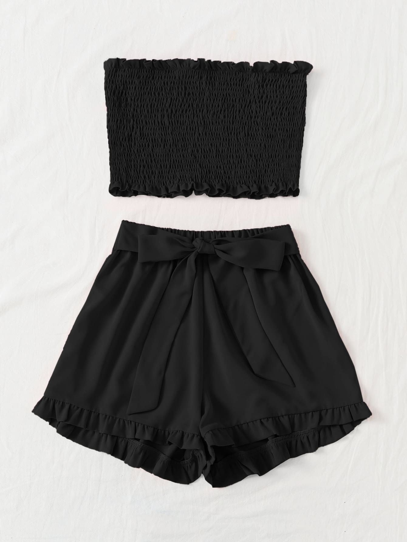 Top bandeau fruncido ribete en forma de lechuga con shorts bajo fruncido con cordón delantero