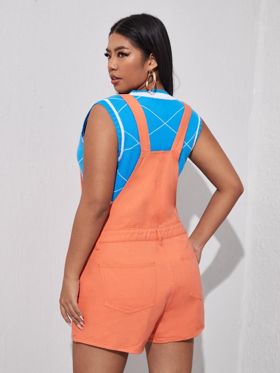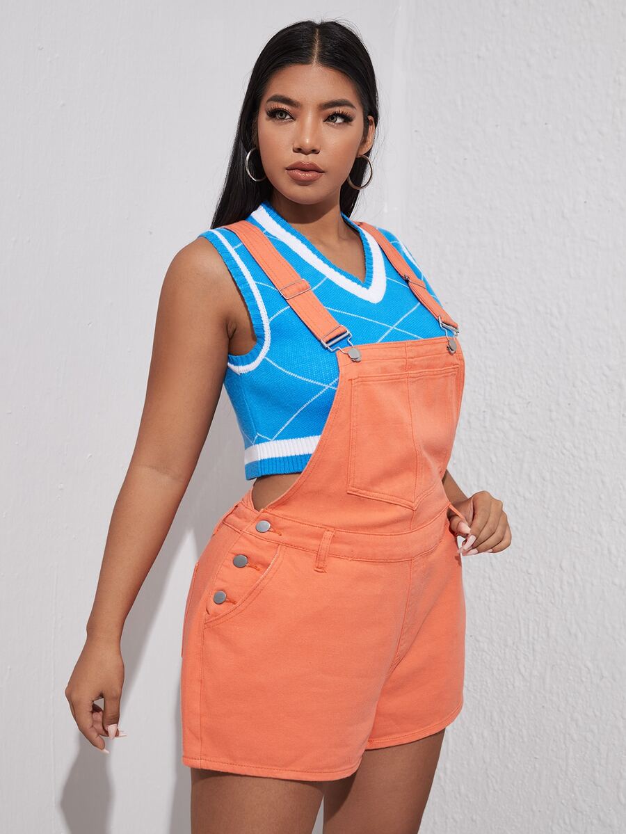 Shorts overol mezclilla con parche de bolsillo