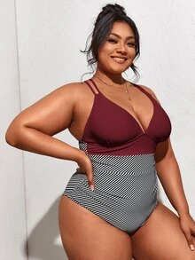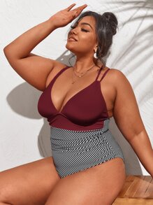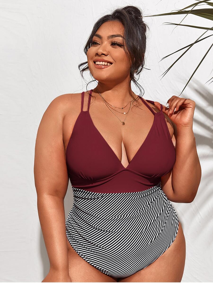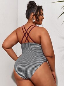 Bañadores de talla grande Cruzado A rayas Elegante
