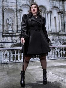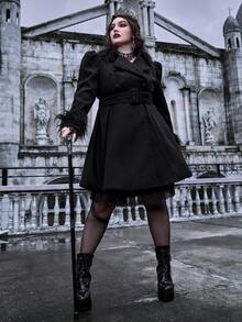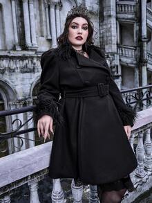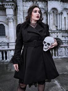 Abrigo de manga farol de peluche puño de doble botonadura con hebilla con cinturón