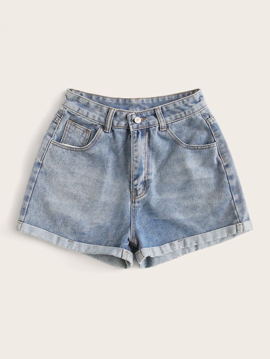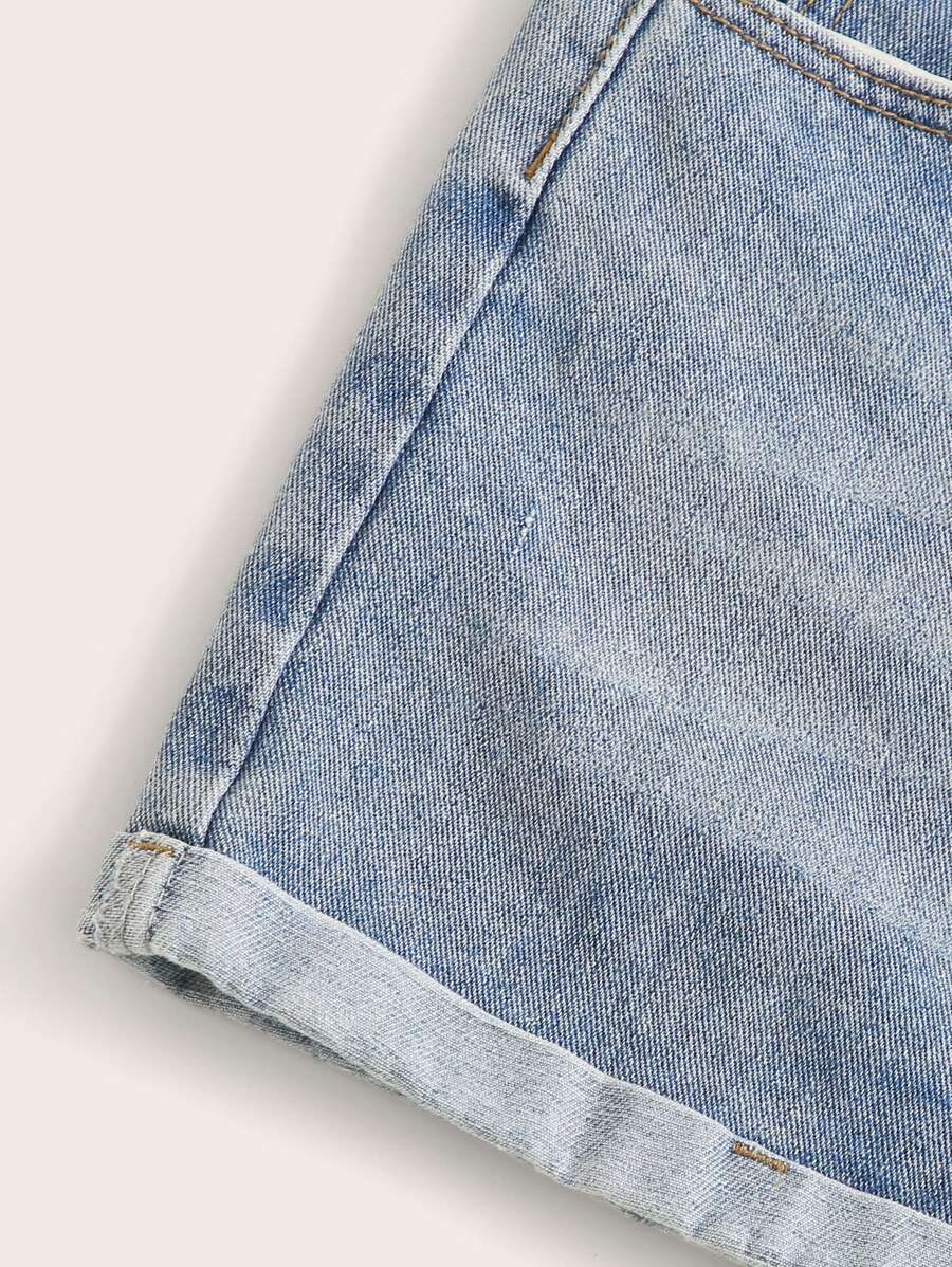 Shorts mezclilla con lavado descolorido bajo de doblez - grande