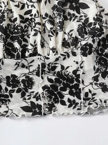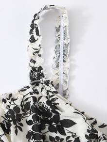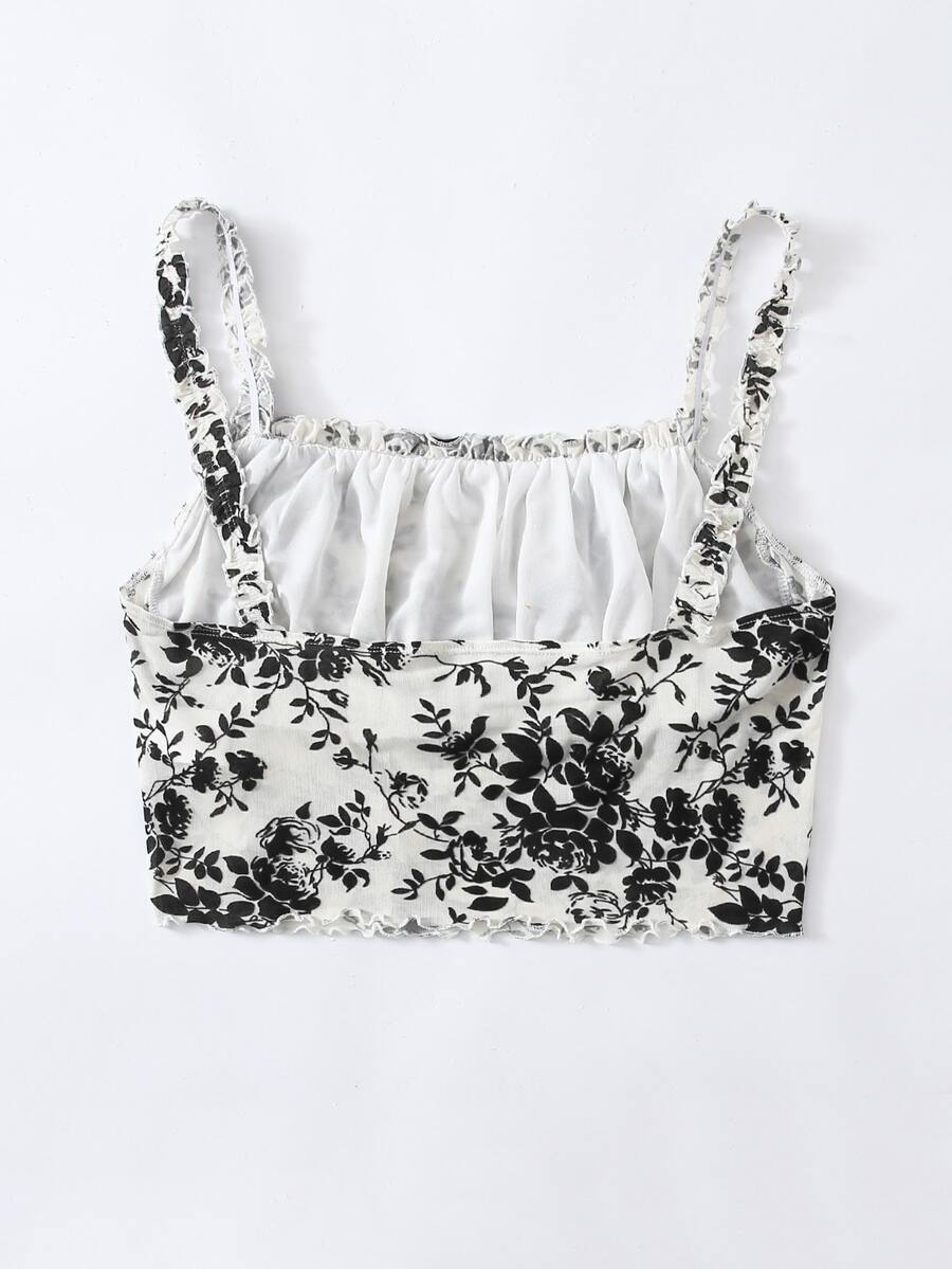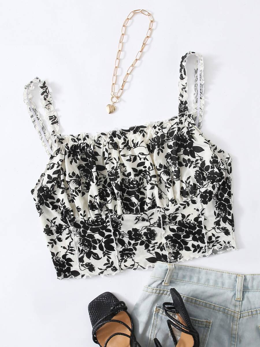 Top corto de pechera plisada con ribete de lechuga floral de gran tamaño