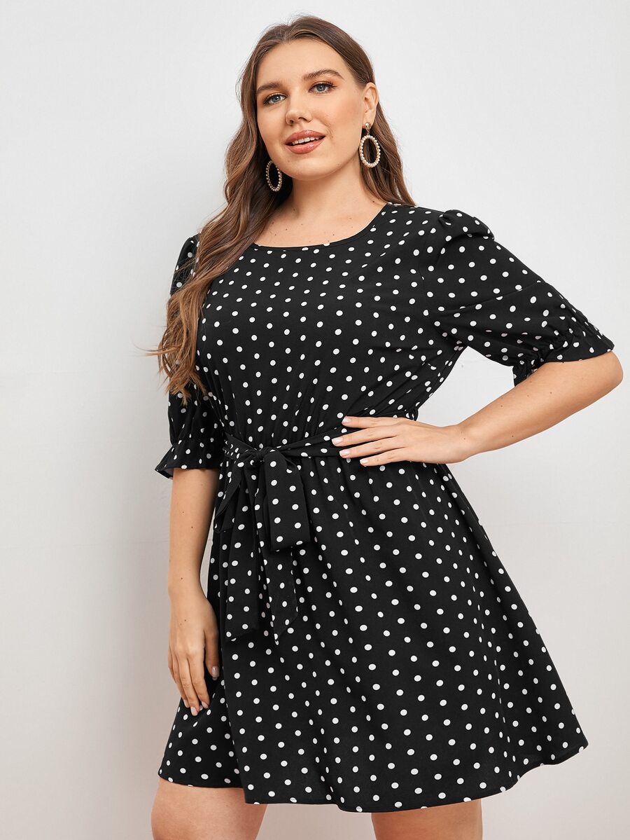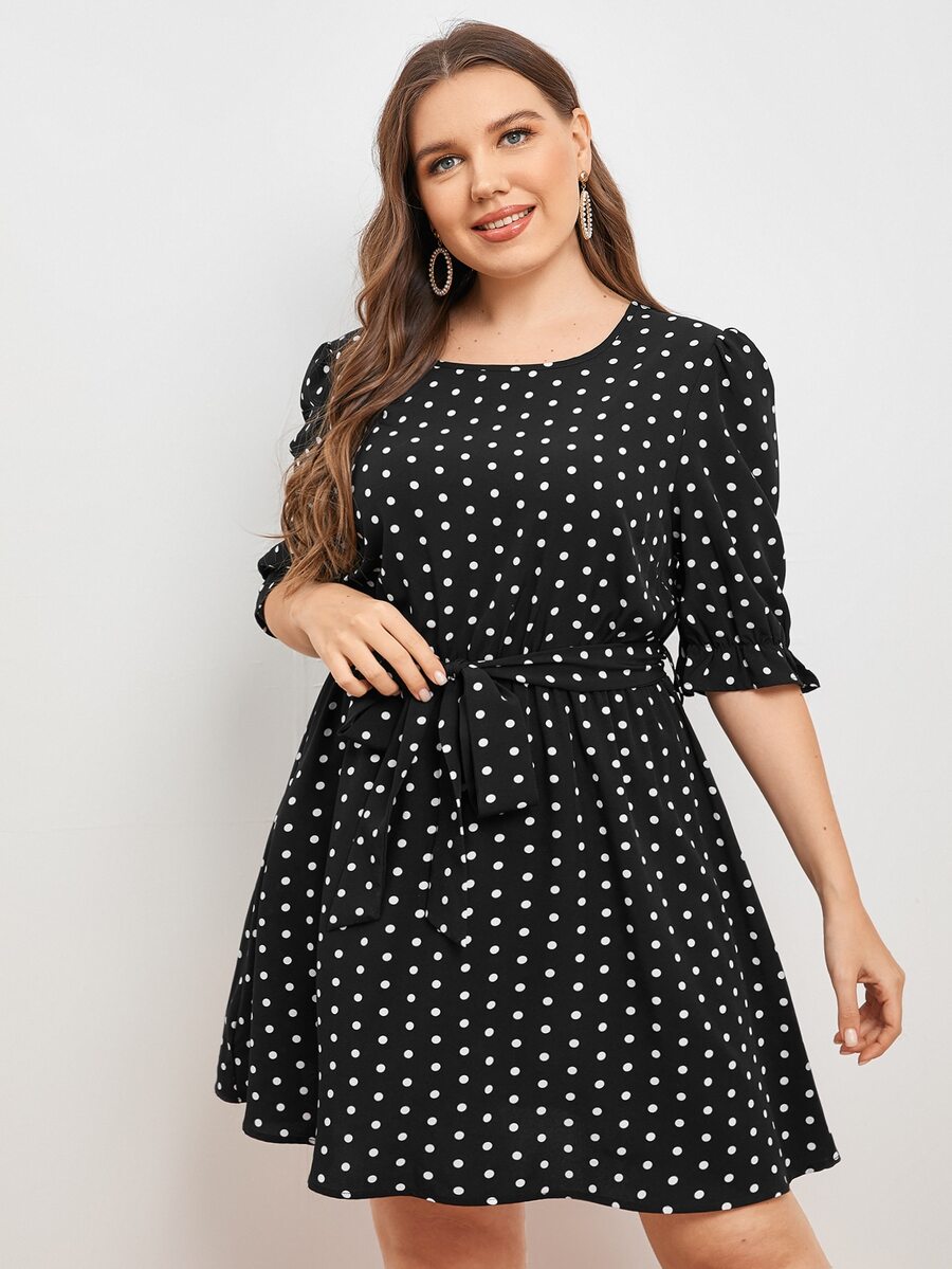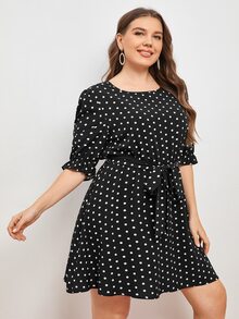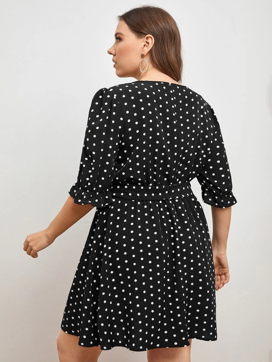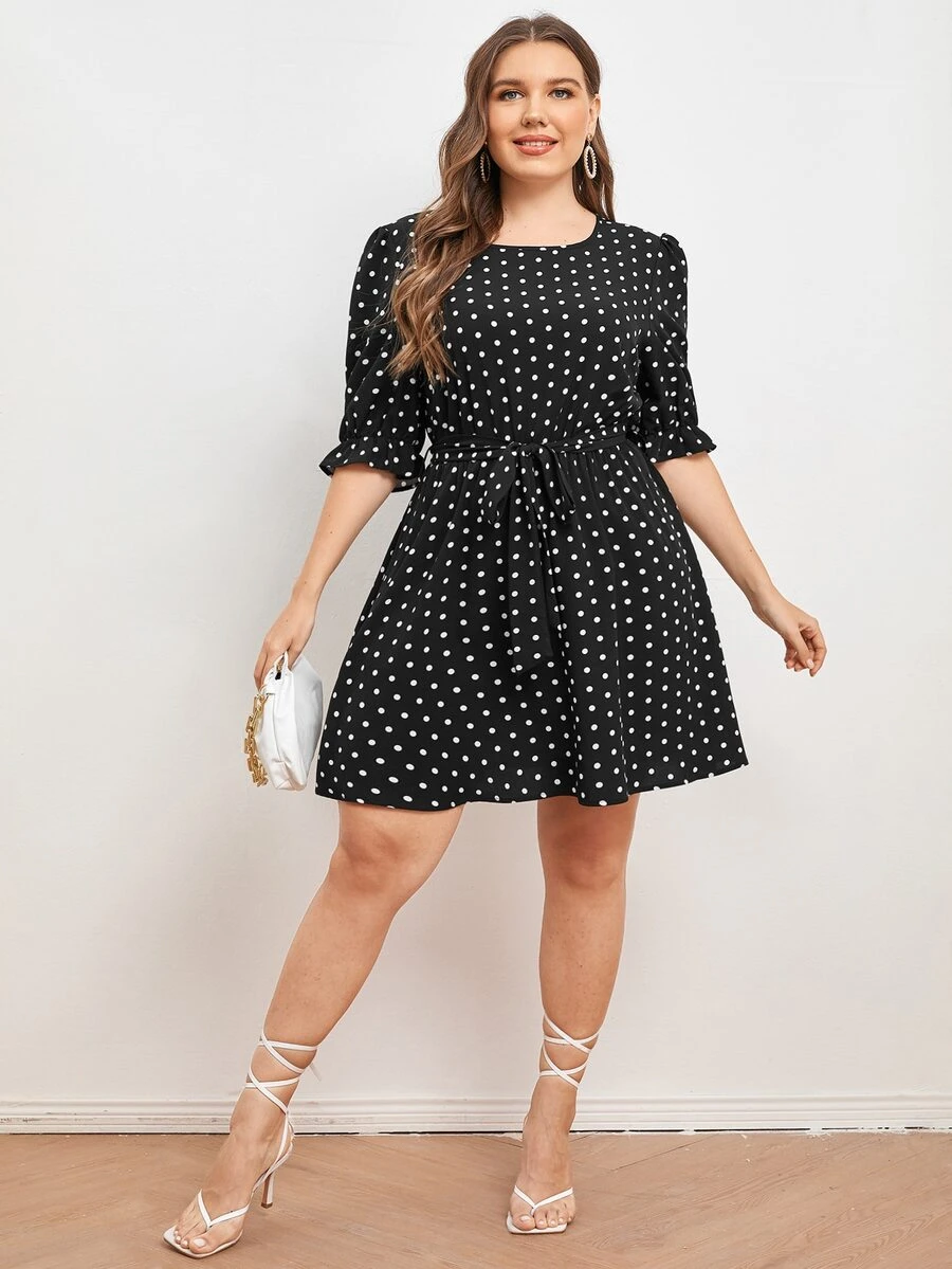 Vestidos Tallas Grandes Volante Lunares Casual