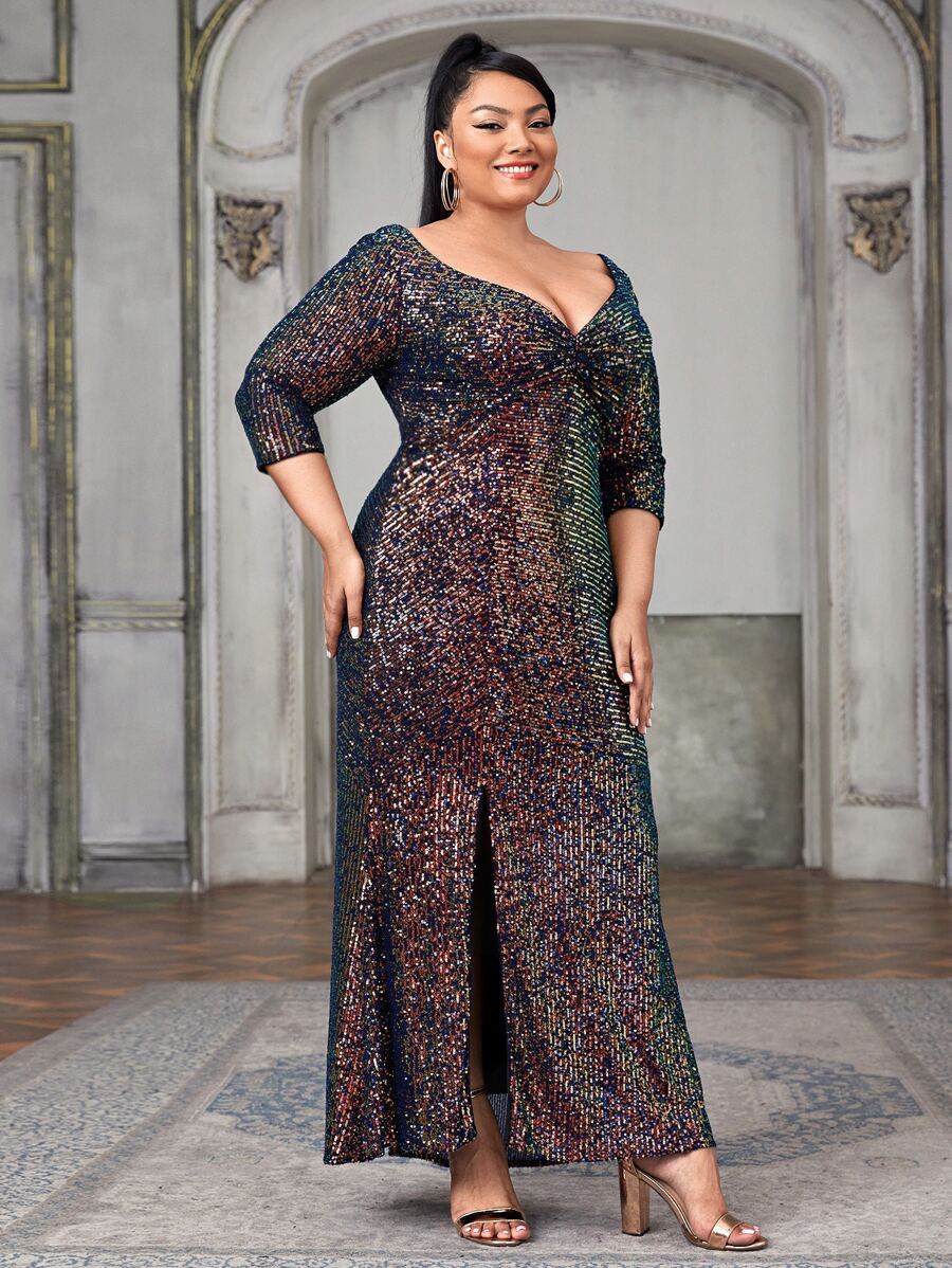 Vestido de fiesta bajo con abertura de cuello sweetheart con lentejuelas
