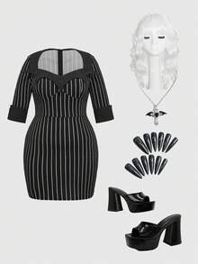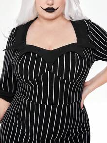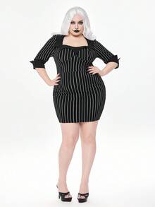 Goth Vestido mini ajustado gótico de talla grande a rayas verticales en negro y blanco