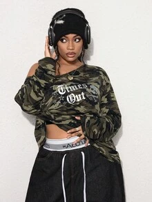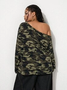 J-Fashion Camiseta de mujer de talla grande casual con estampado de calavera con strass y diseño de un solo hombro en estilo punk