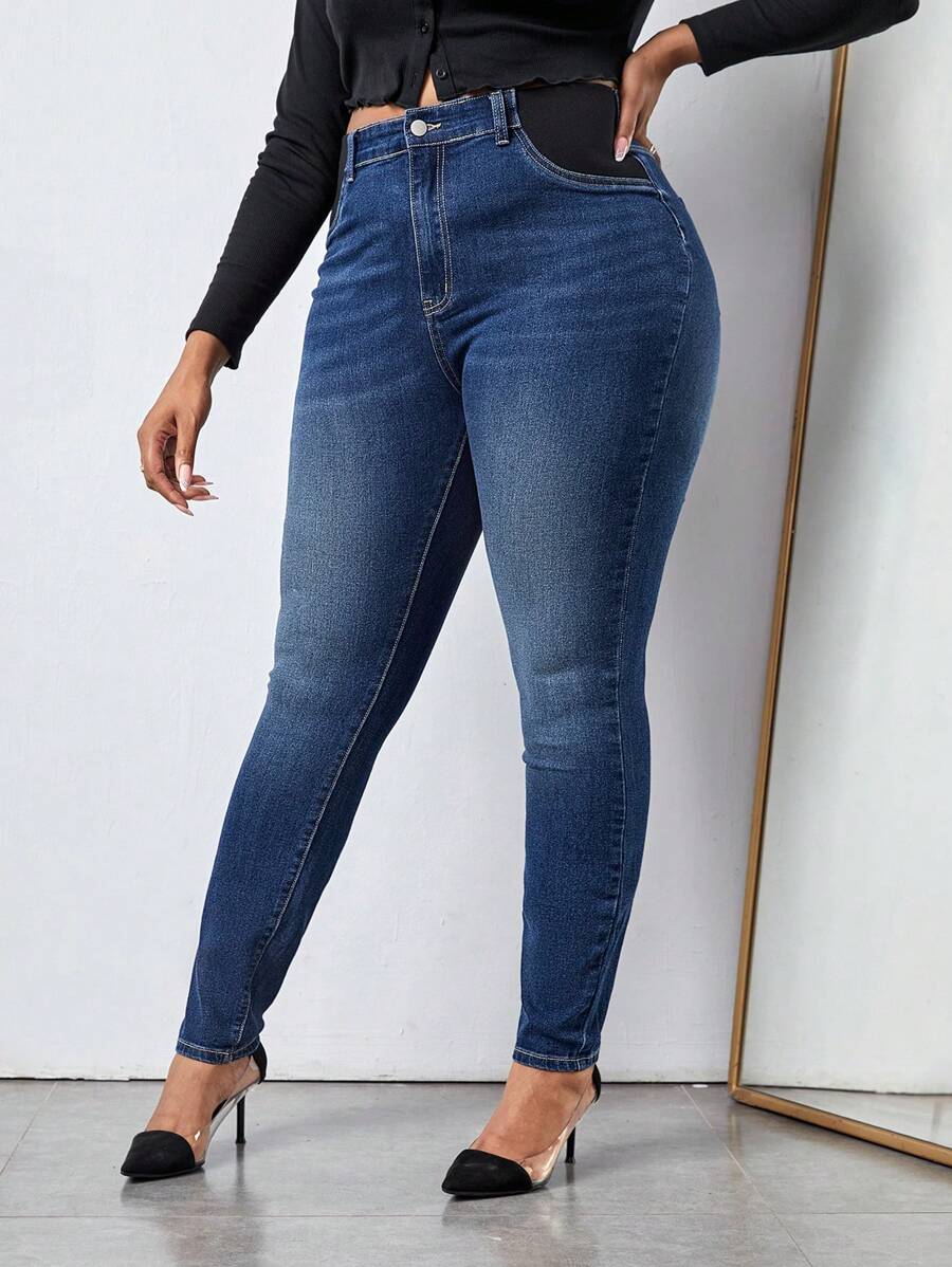 Jeans Ajustados De Talla Grande Para Mujer Con Contraste