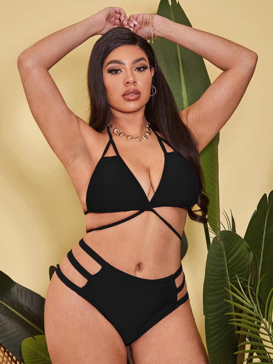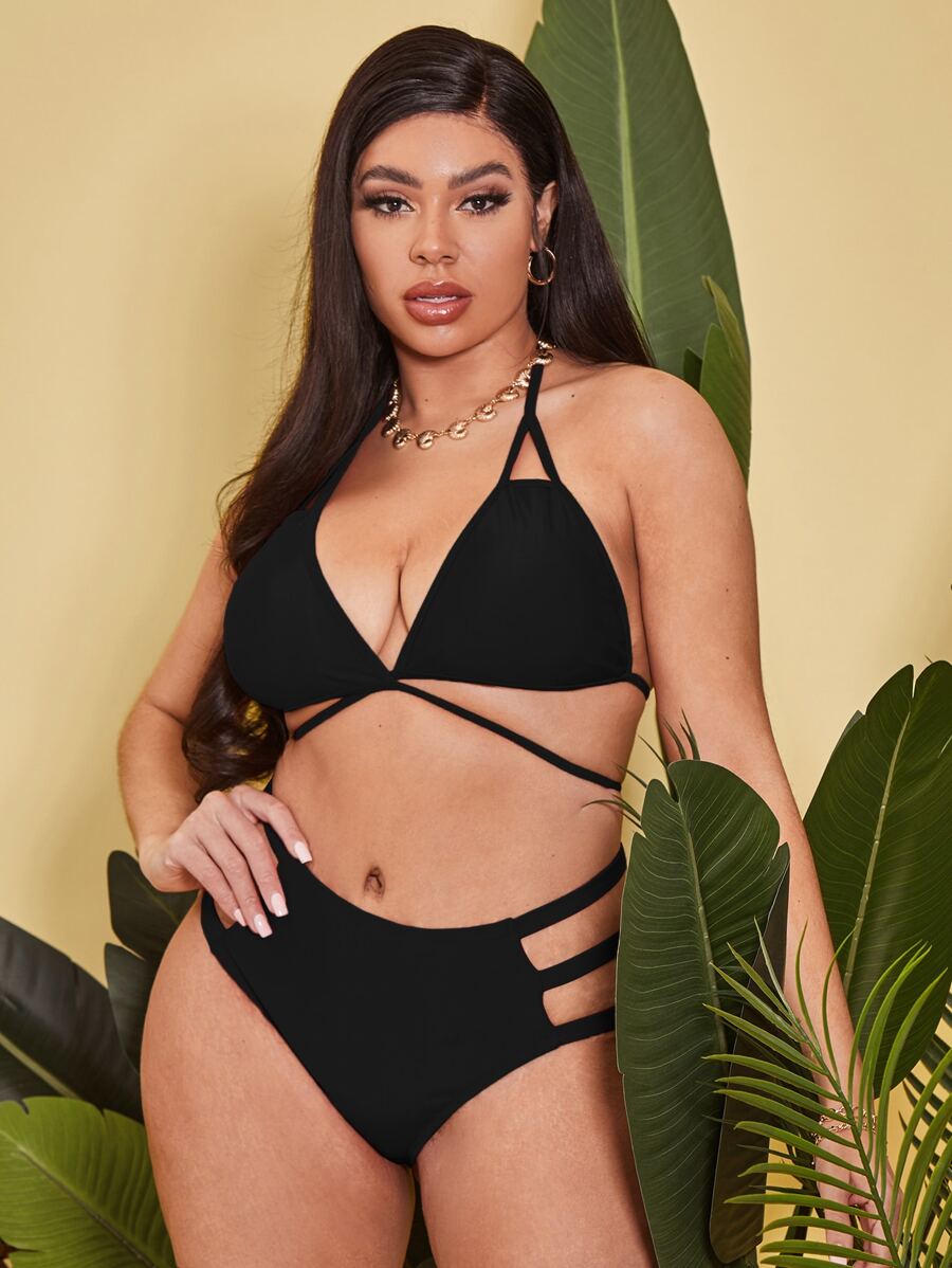 Conjunto de bikini con escote halter y recorte de talla grande para playa de verano