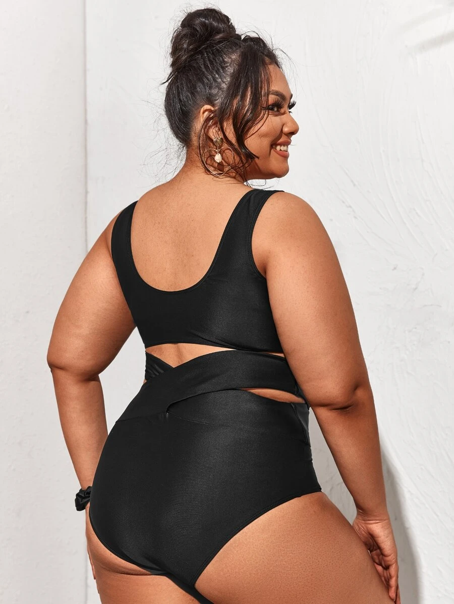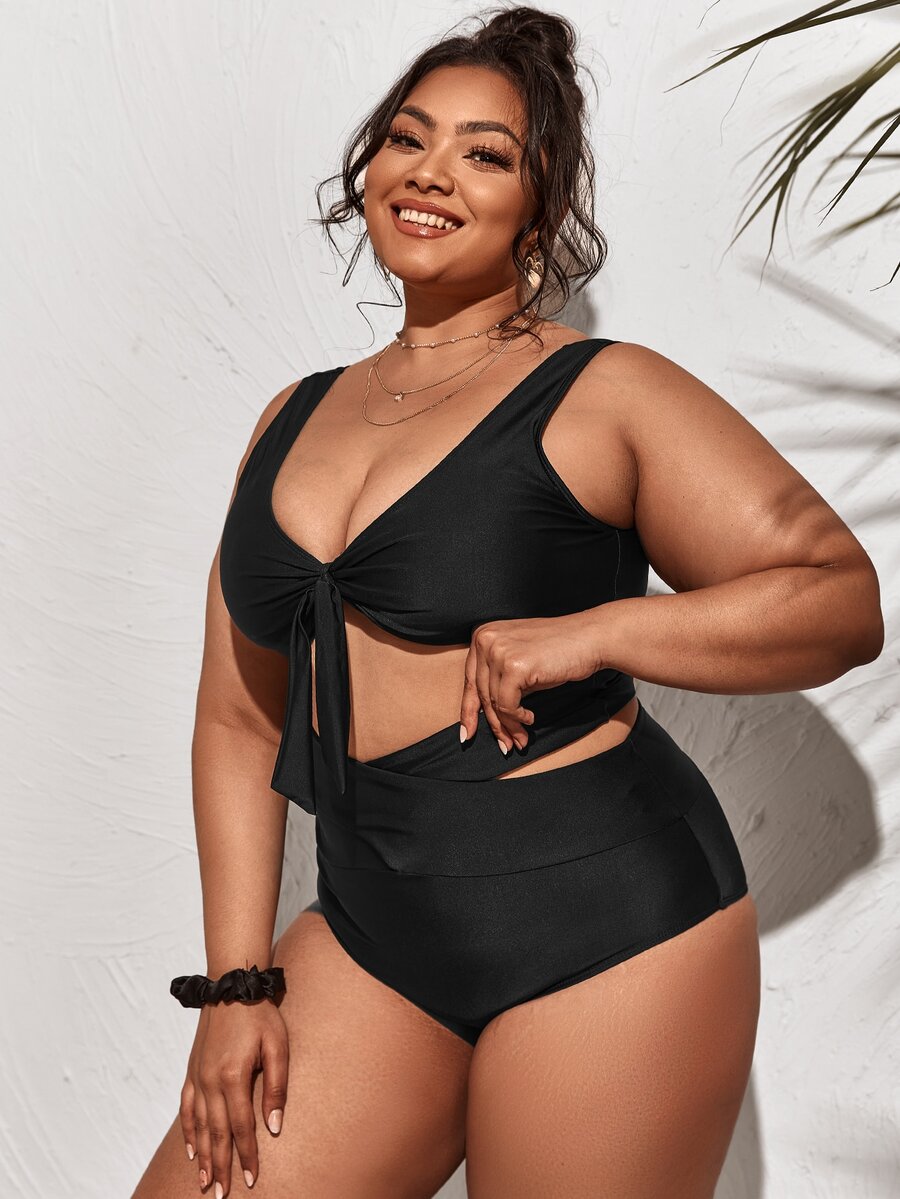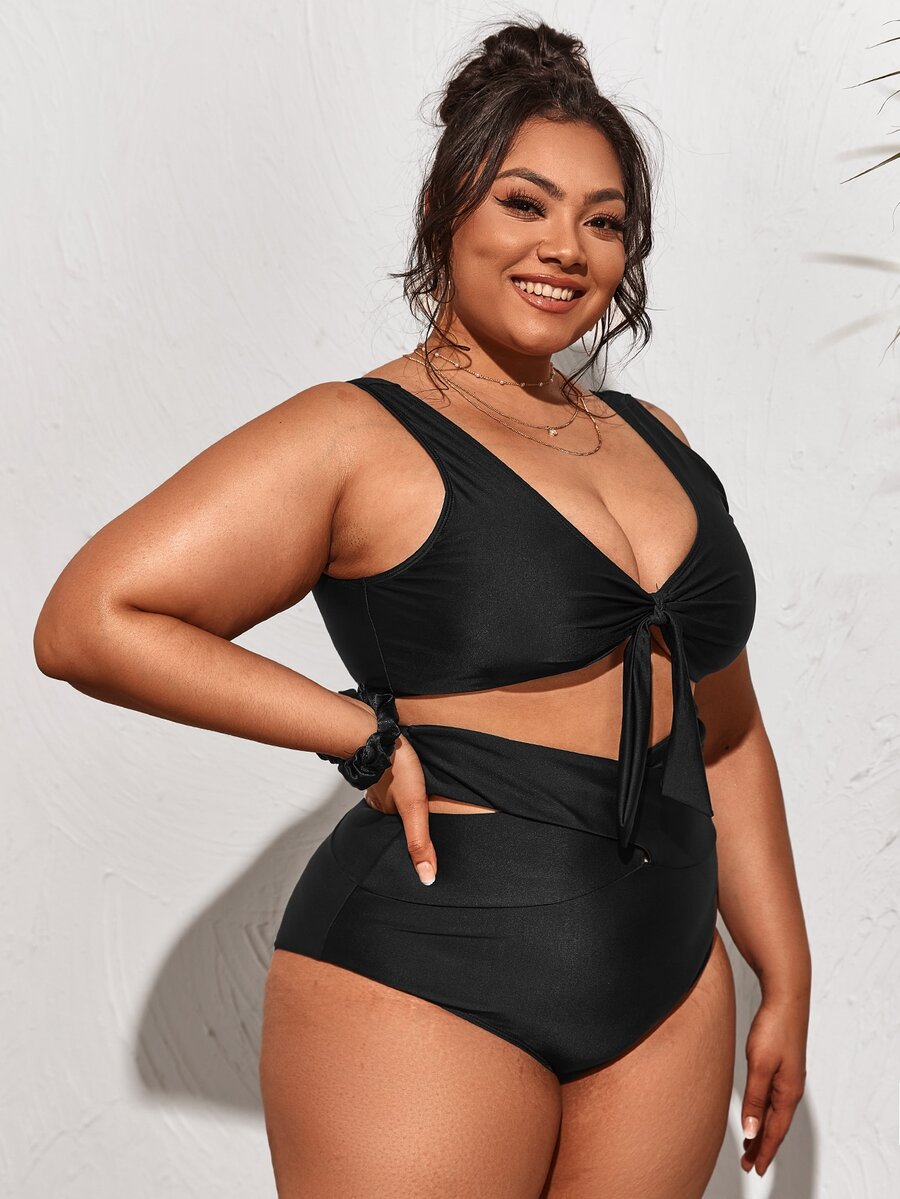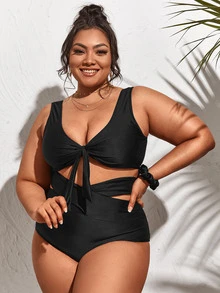 Conjunto de bikini con cortes y nudos de talla grande para playa de verano