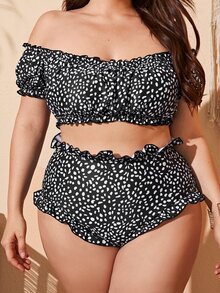 Conjunto de bikini bardot con volantes de estampado dálmata talla grande para playa de verano