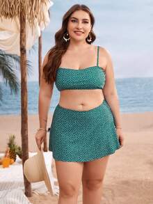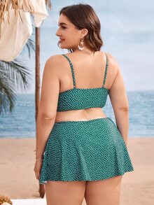 Conjunto de bikini estilo falda-pantalón con estampado de flores pequeñas para tallas grandes, para la playa de verano