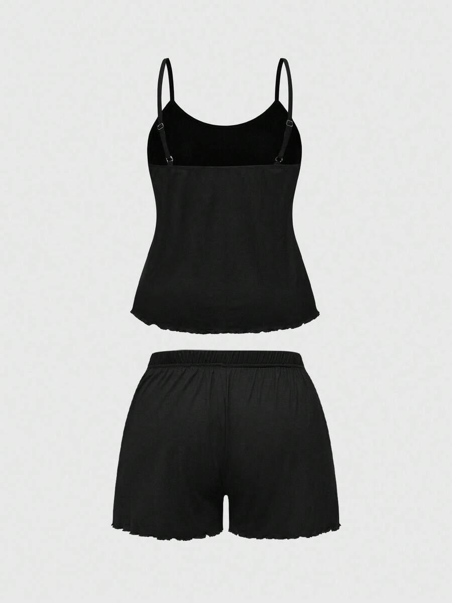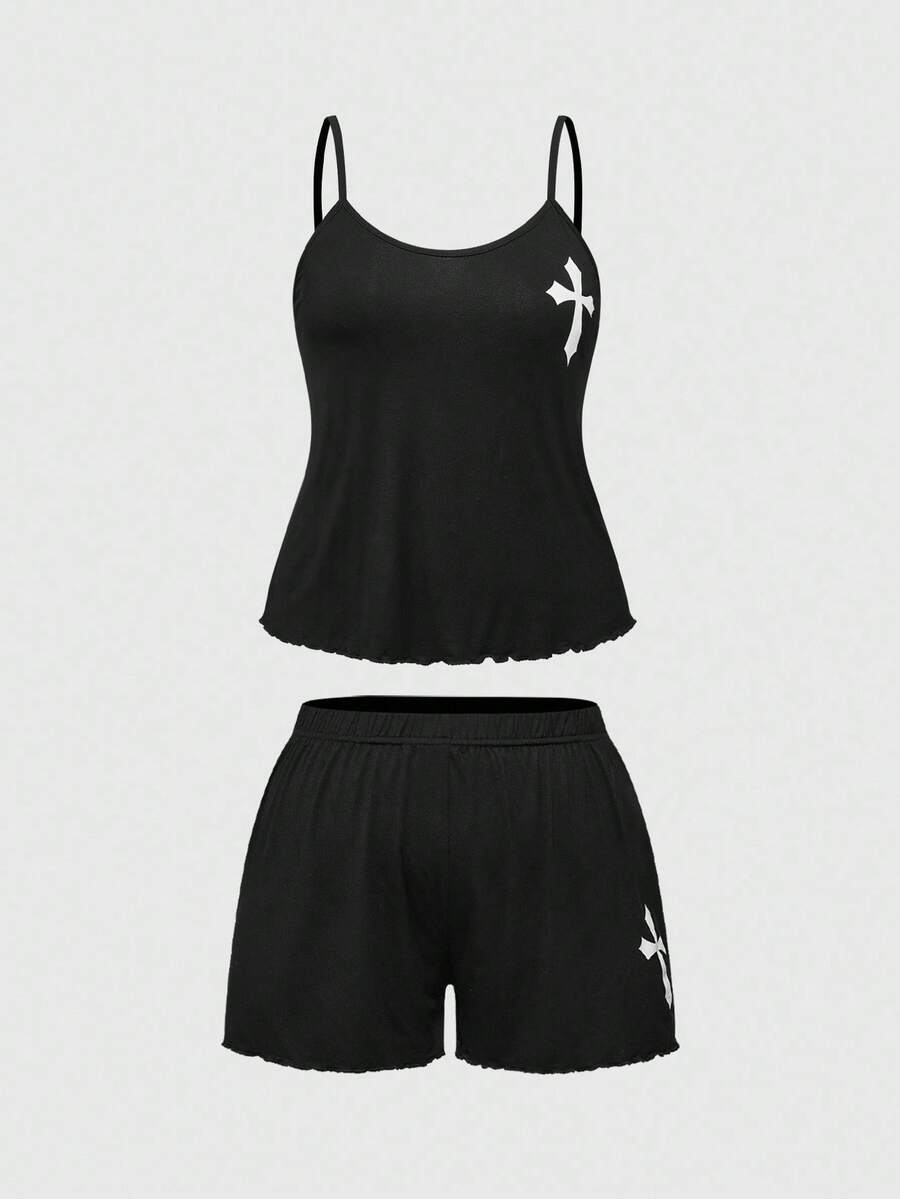 Goth Conjunto de pijama casual de shorts con tirantes cruzados de estilo gótico para tallas grandes