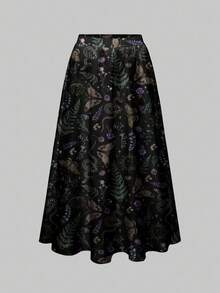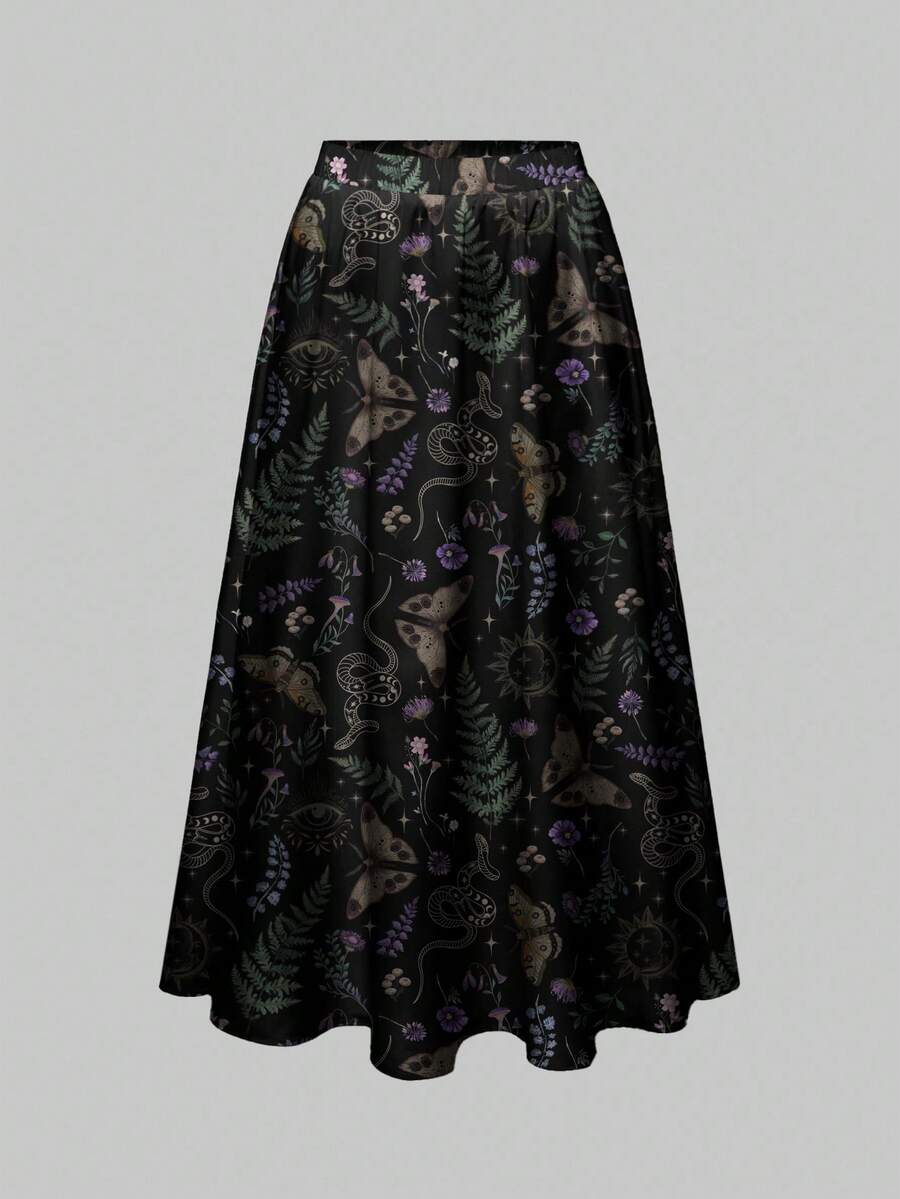 Goth Falda con estampado de bruja gótica, misterioso, de talla grande, con hojas, plantas, mariposas, serpientes, sol, luna y estrellas