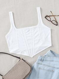 Camiseta top de tirantes con encaje de contraste de unicolor talla grande, para escuela y verano