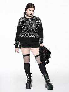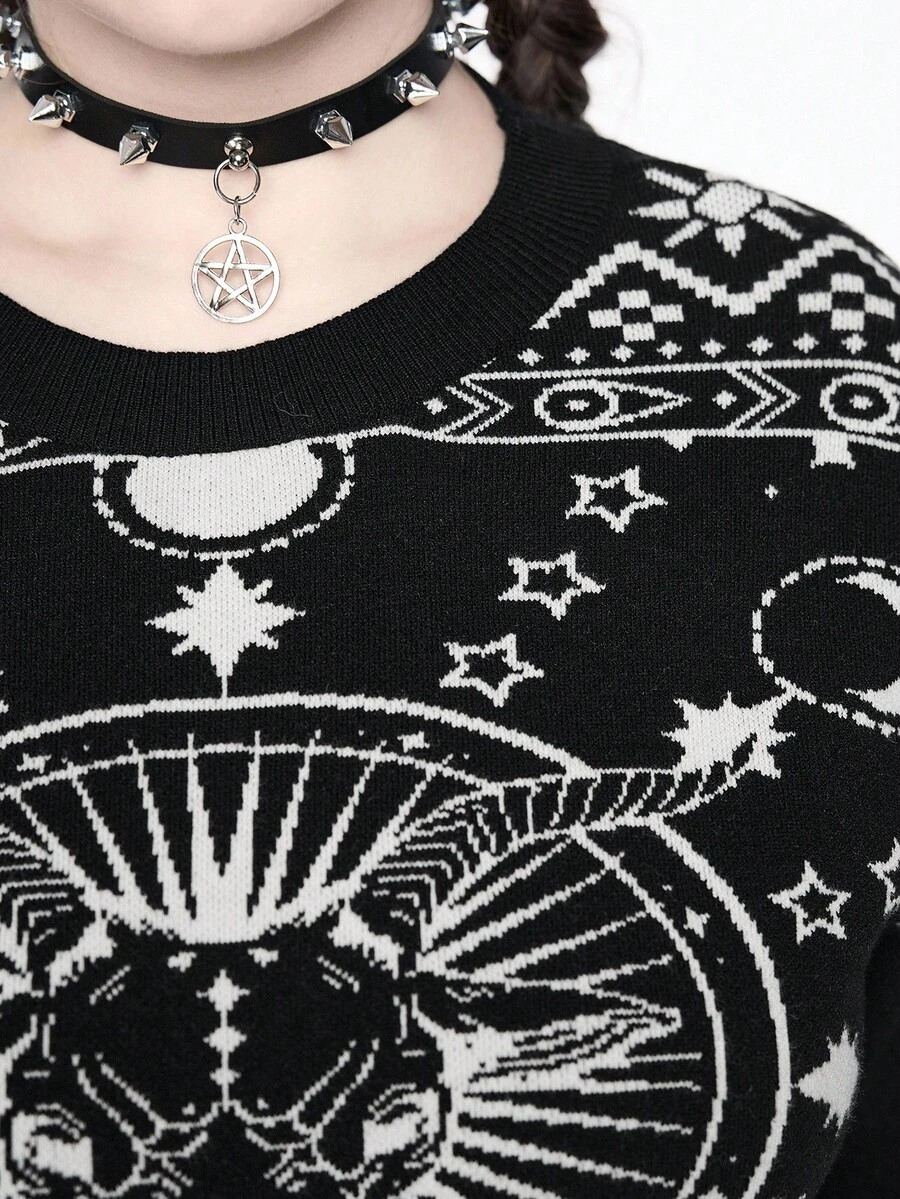 Goth Suéter negro de talla grande con estampado de estrella, luna y antílope en estilo gótico, suéter de mujer de talla grande para otoño/invierno, suéter casual de talla grande con estampado gótico para Navidad y Halloween, blusas de talla grande para uso diario, suéter de talla grande, ropa urbana, casual, ropa de mujer de talla grande