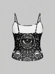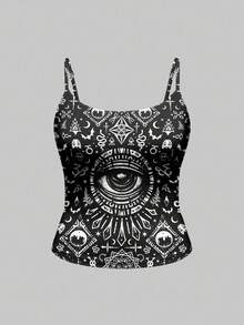Goth Top de tirantes con calavera, ojo, cruz, polilla y serpiente con gemas, estilo misterioso y oscuro de Halloween para tallas grandes