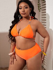 Conjunto de bikini de talla grande con tirantes al cuello y triángulo, para verano en la playa
