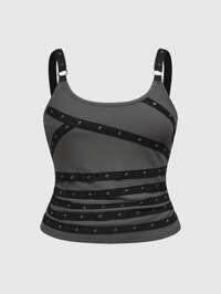 Grunge Punk Camiseta de tirantes ajustada con cuello drapeado, decoración de ojetes metálicos y bajo asimétrico, estilo vintage punk, tallas grandes para mujer