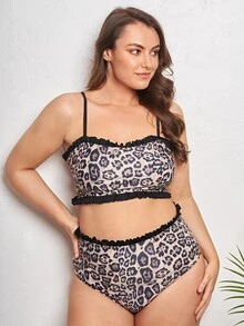 Bikini de talle alto con volantes y estampado de leopardo, para tallas grandes, para el verano y la playa