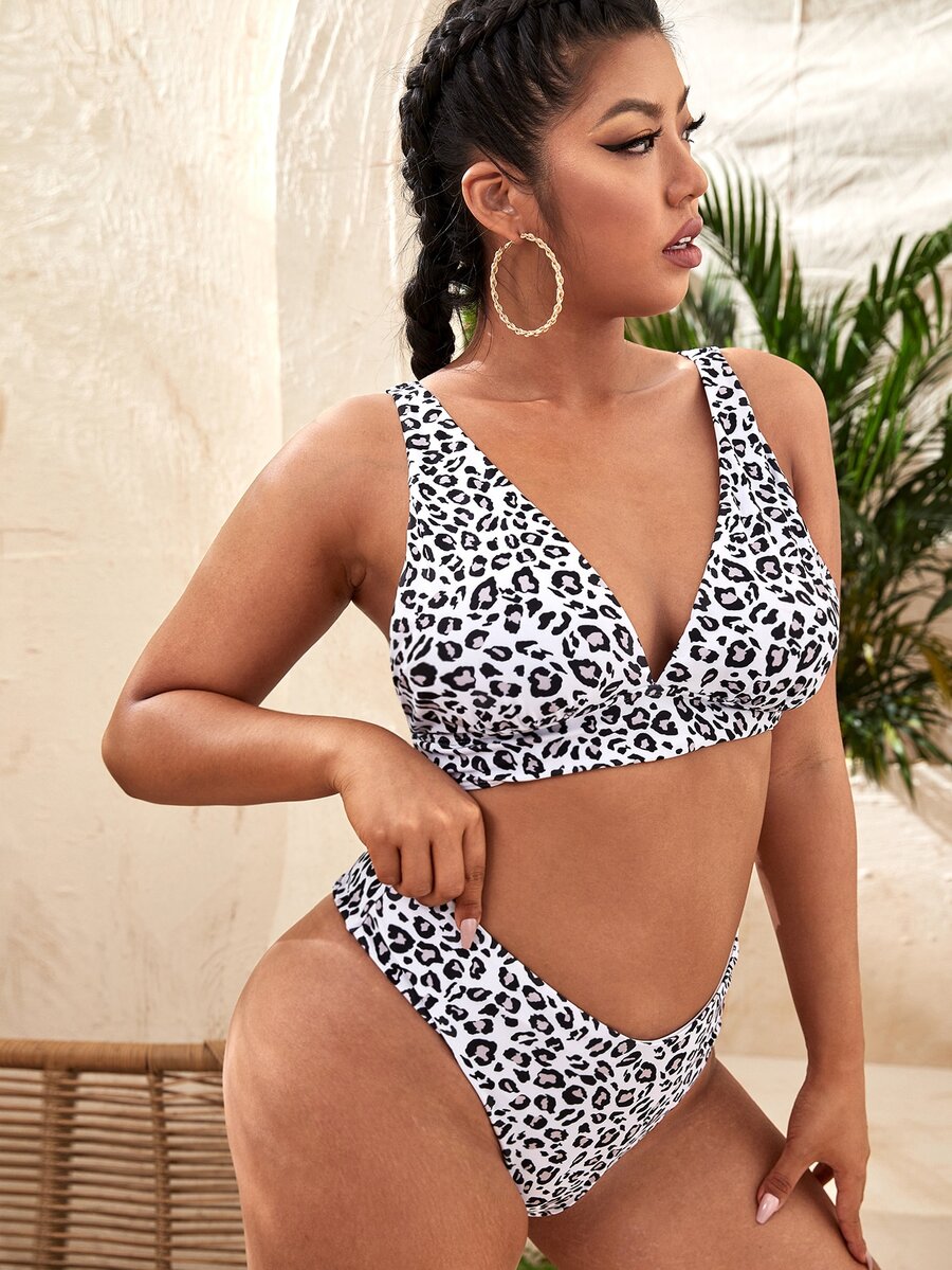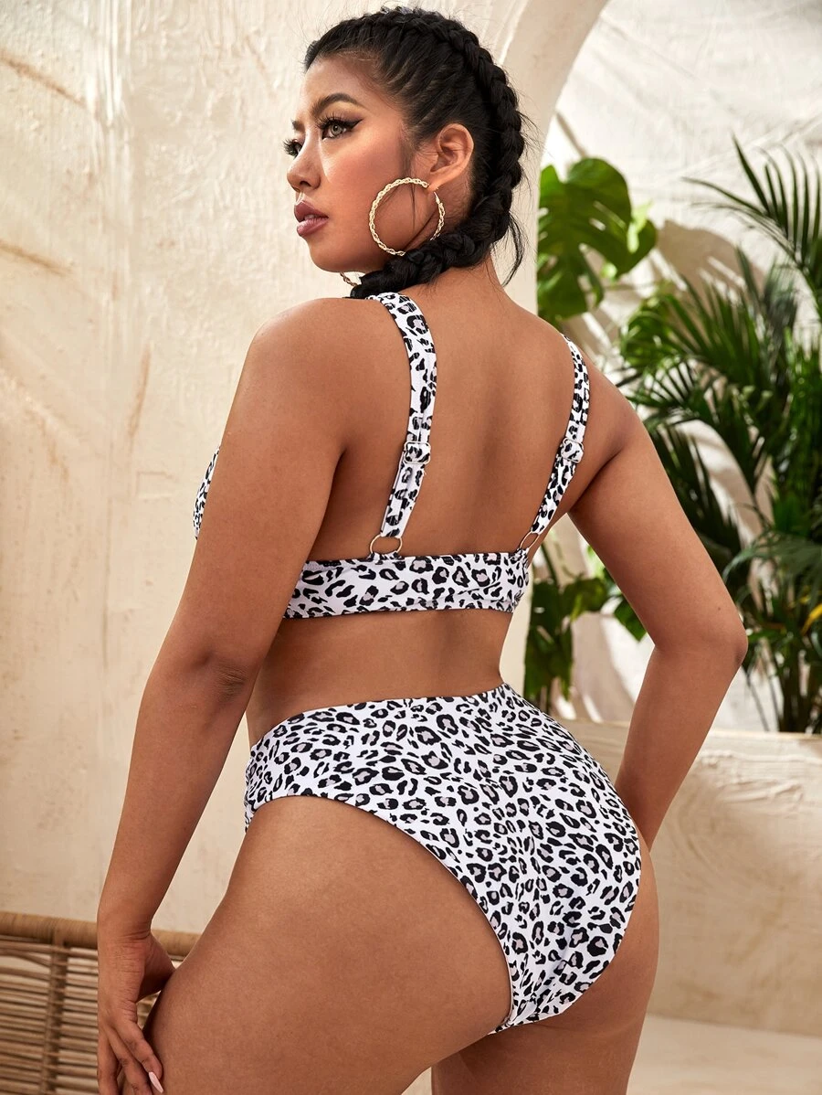 Conjunto de bikini de talla grande, de cintura alta con estampado de leopardo, para playa de verano