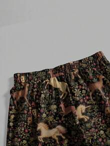 Fairycore Pantalones palazzo holgados de talla grande con estampado vintage de flores y caballos en todo el diseño