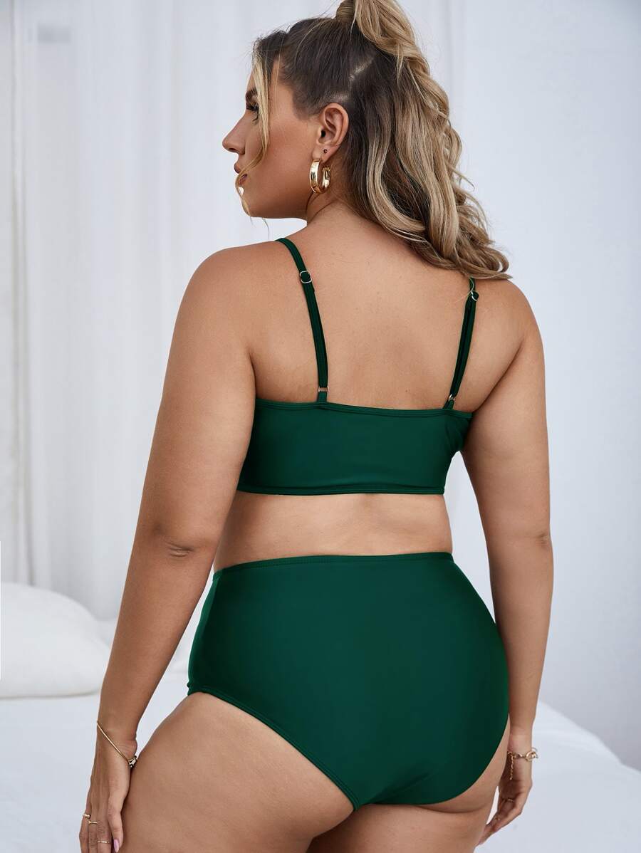 Conjunto de bikini de talla grande de cintura alta con cordones planos y encaje, ideal para la playa en verano