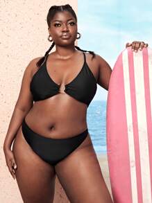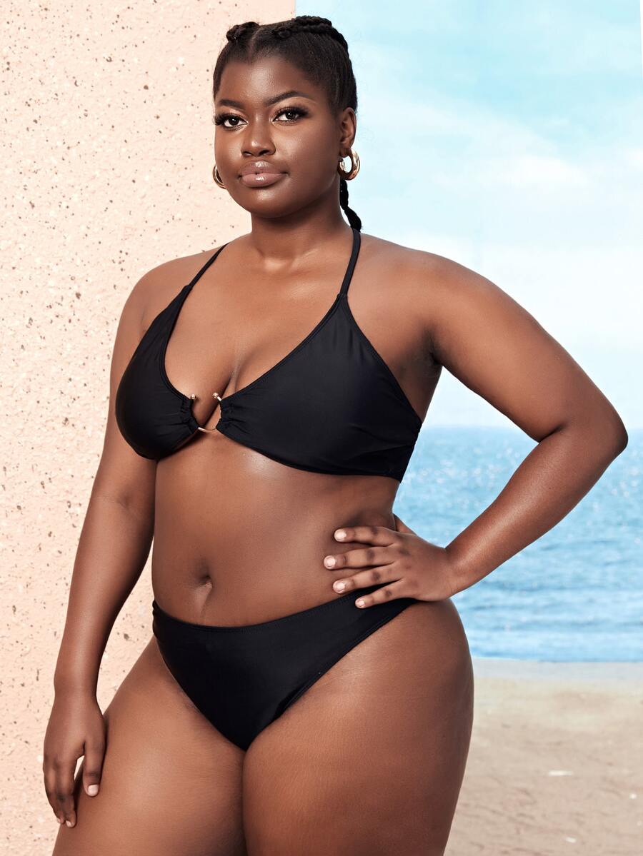 Conjunto de bikini de talla grande con anillos entrelazados para playa de verano