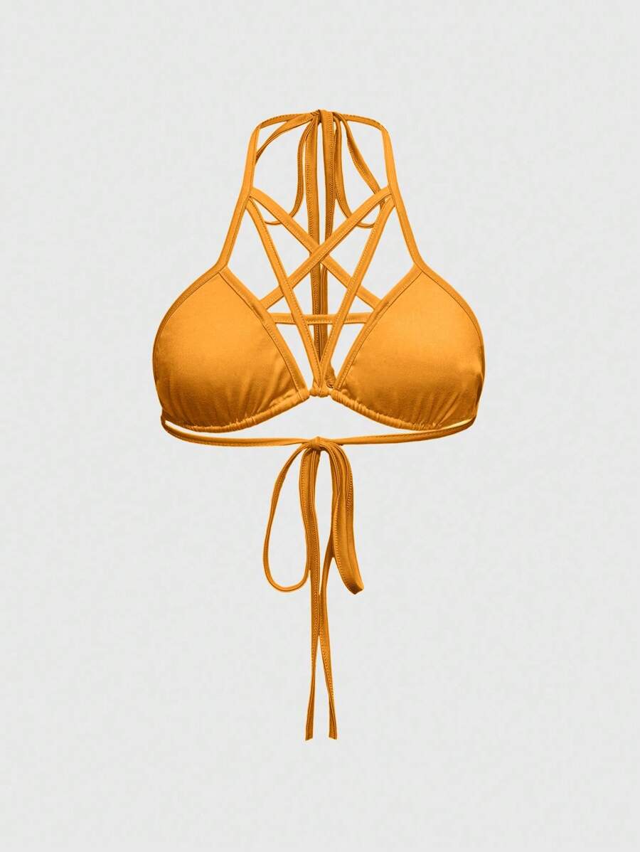 Goth Top de bikini de talla grande con tirantes finos estilo sexy de vacaciones, con diseño de estrella de cinco puntas amarrada