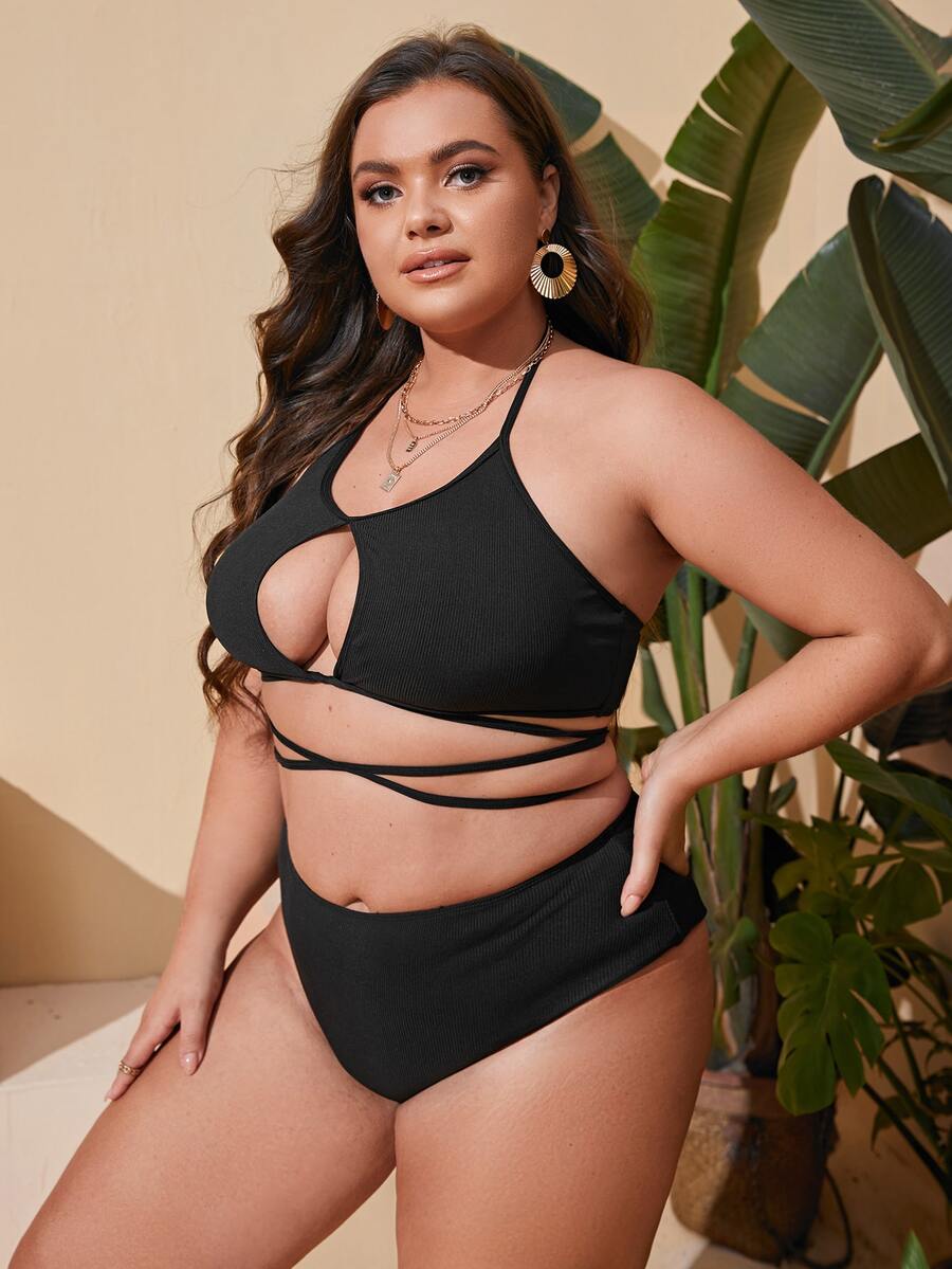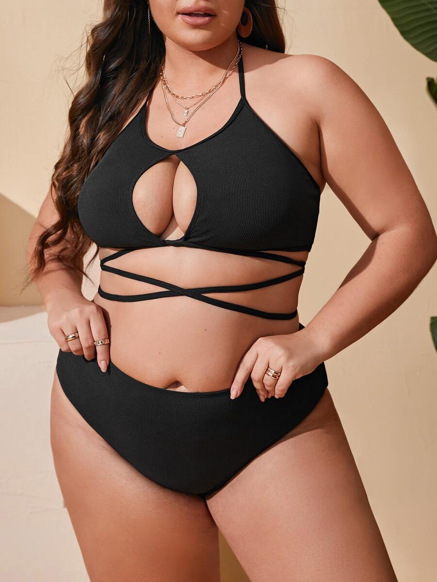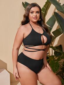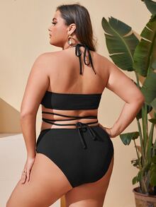 Conjunto de bikini con cordones y encaje sólido de talla grande para verano en la playa