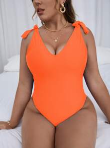 Traje de baño de una pieza con hombros anudados, talla grande, para el verano y las vacaciones en la playa