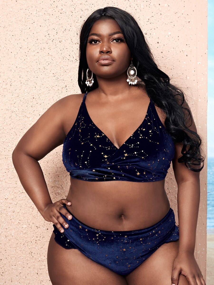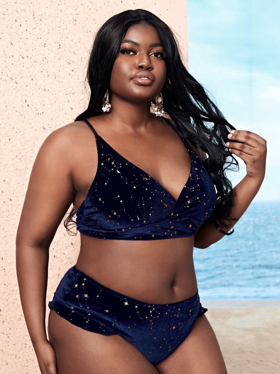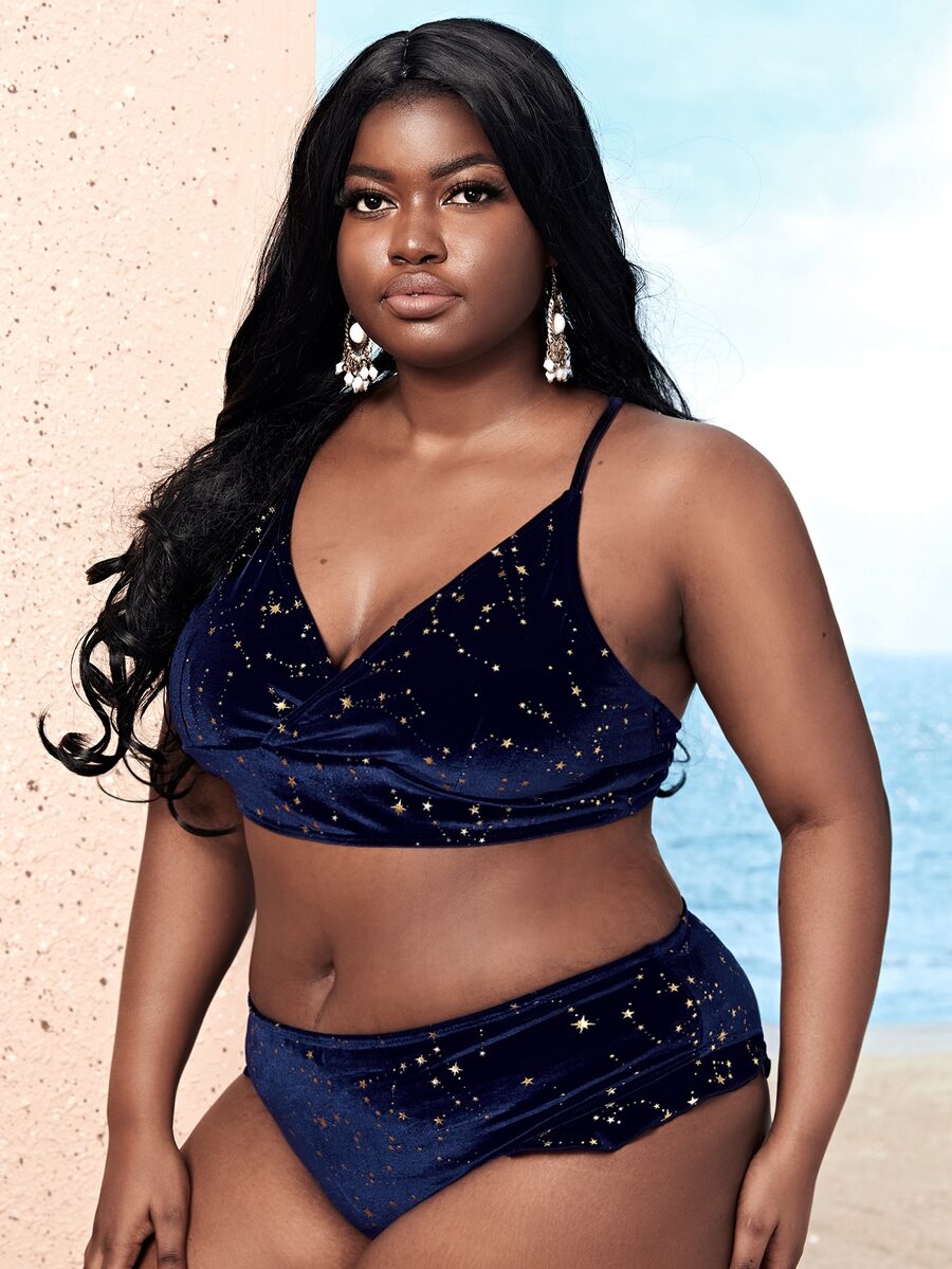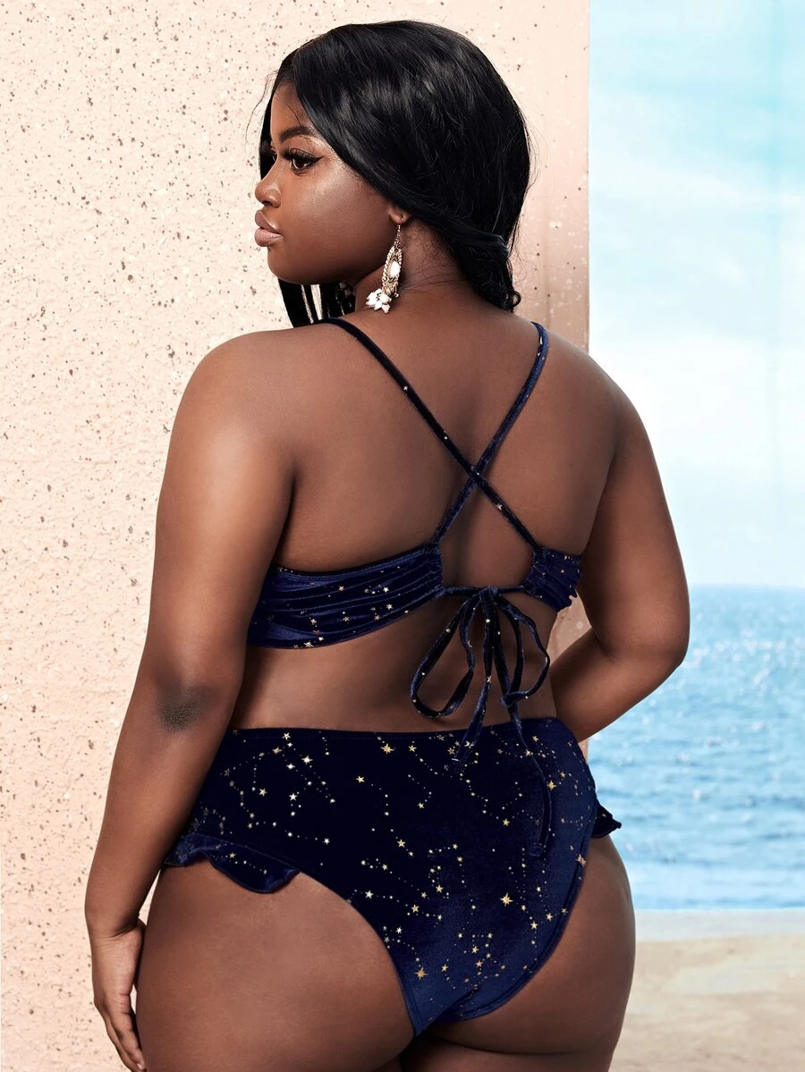 Conjunto de bikini con estampado de estrella para talla grande, playa de verano