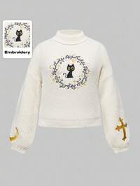 Fairycore Suéter verde de manga larga con parches de malla, estilo Mori Kei, de talla grande, de estilo Mori, con estampado floral y de rayas, para otoño/invierno, de la subcultura Fariycore, de estilo hada, de talla grande, para mujer, de punto, de manga larga, para otoño/invierno