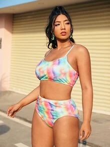 Conjunto de bikini de talla grande con cintura alta y efecto tie-dye, para verano y playa