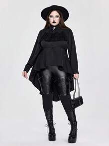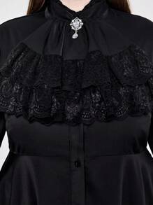 Goth Blusa de mujer con estilo palaciego vintage, desenredable, con colgante de cristal barroco, campana de manga R, y cintura