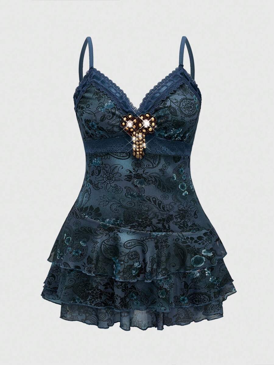 Hippie Vestido corto con volantes, cintas, encaje y estampado de paisley de estilo retro hippie vintage para mujer talla grande
