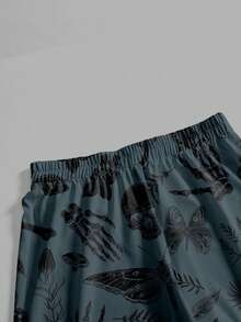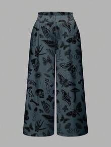 Goth Pantalones anchos y sueltos de talla grande para mujer con estampado gótico, oscuro y misterioso de calavera, polilla, planta, mariposa y hoja
