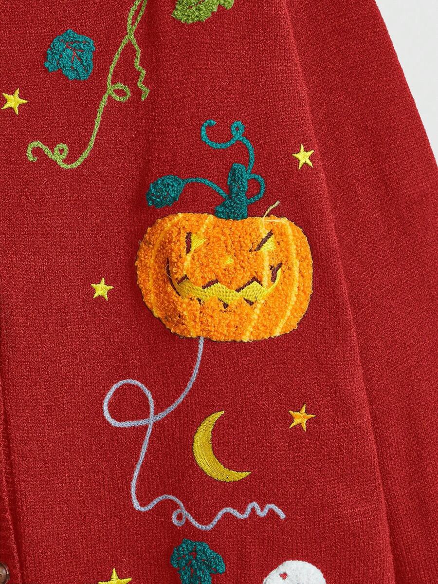 Fairycore Suéter de cárdigan con bordado de calabaza, fantasma y luna para mujeres de talla grande en estilo Cottagecore de Halloween