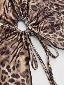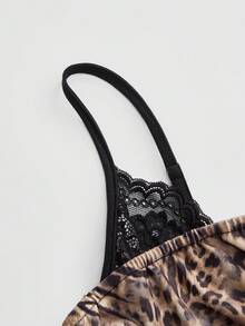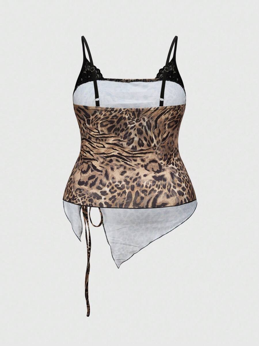 J-Fashion Camiseta de tirantes con estampado de leopardo, dobladillo asimétrico y ribete de encaje para mujer de talla grande