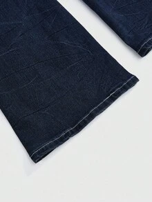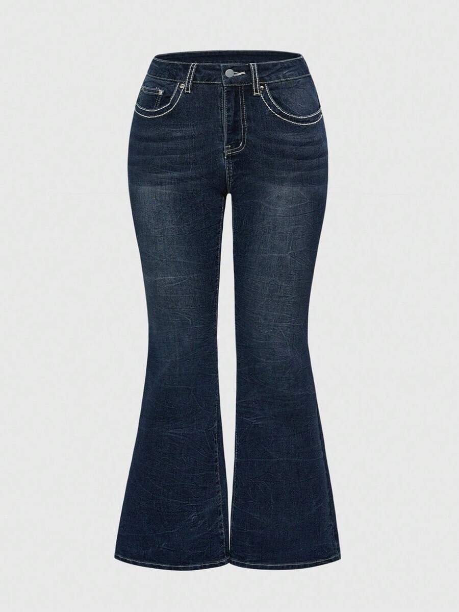 Grunge Punk Jeans de moda casual con bordado de alas y talle bajo acampanado para mujer de talla grande