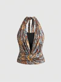 Hippie Blusa de tirantes con cuello halter bordada y con cuentas para tallas grandes