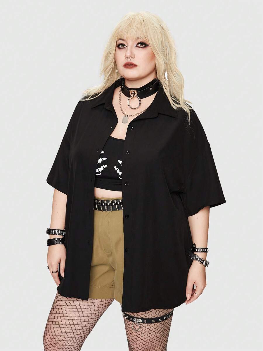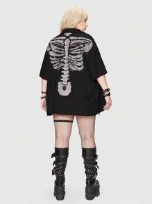 Grunge Punk Talla grande Camisa estampado de esqueleto de hombros caídos