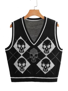 Chaleco de punto con patrón de cráneo & de rombo
