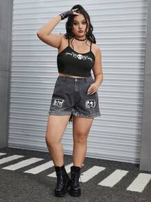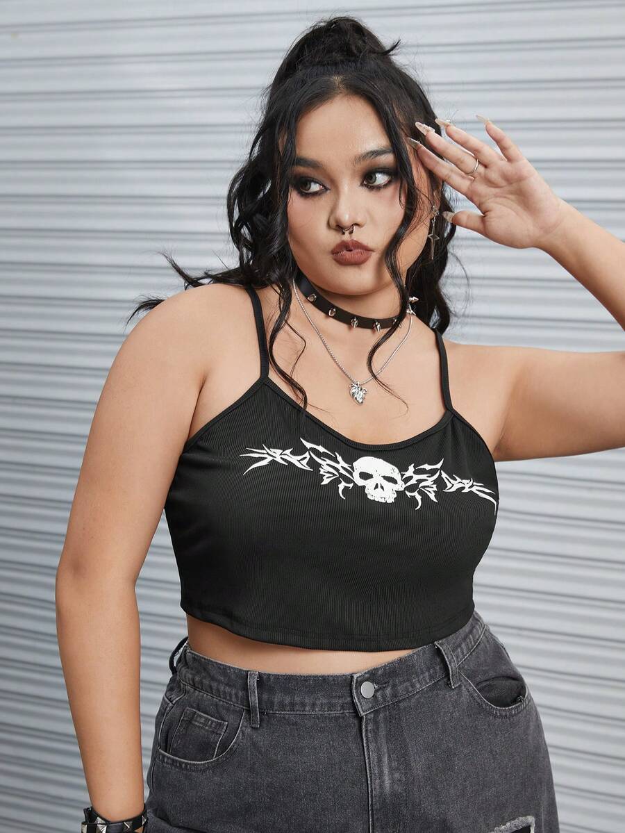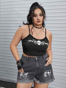 Grunge Punk Talla grande Top de tirantes estampado de cráneo