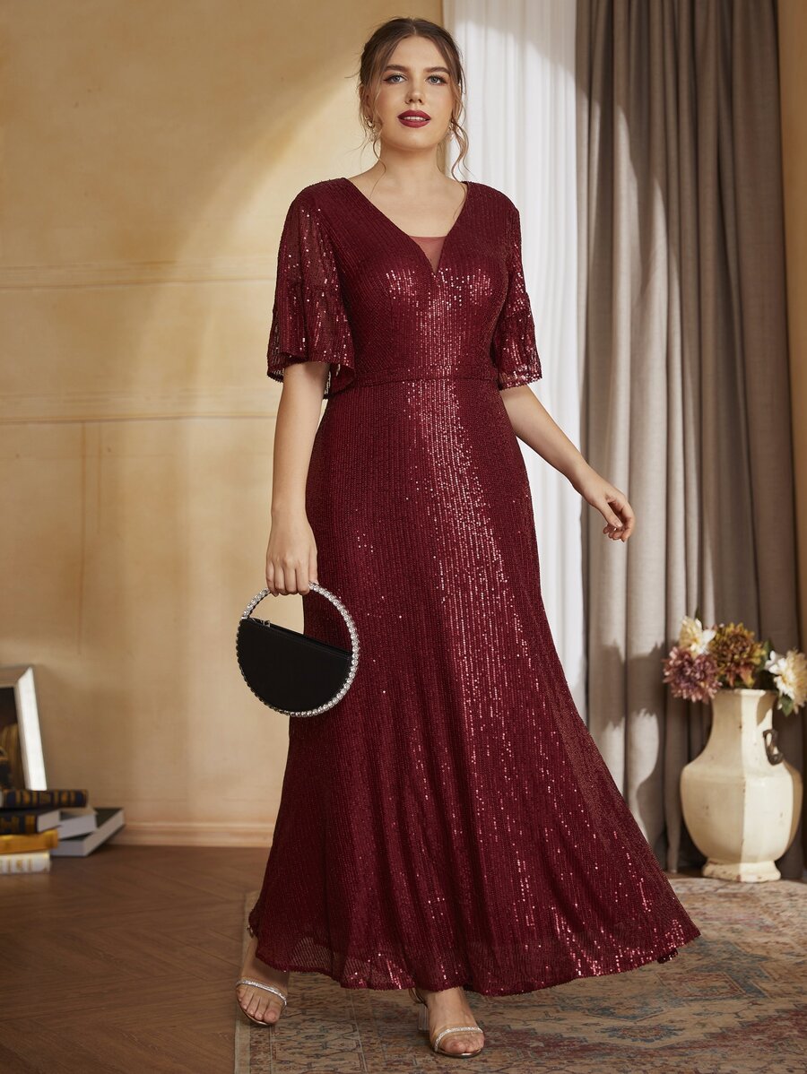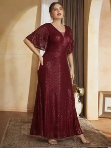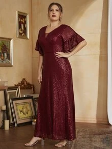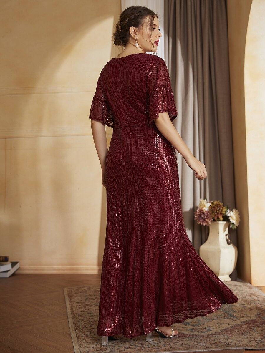 Vestido de fiesta unicolor de manga con volante maxi con lentejuelas