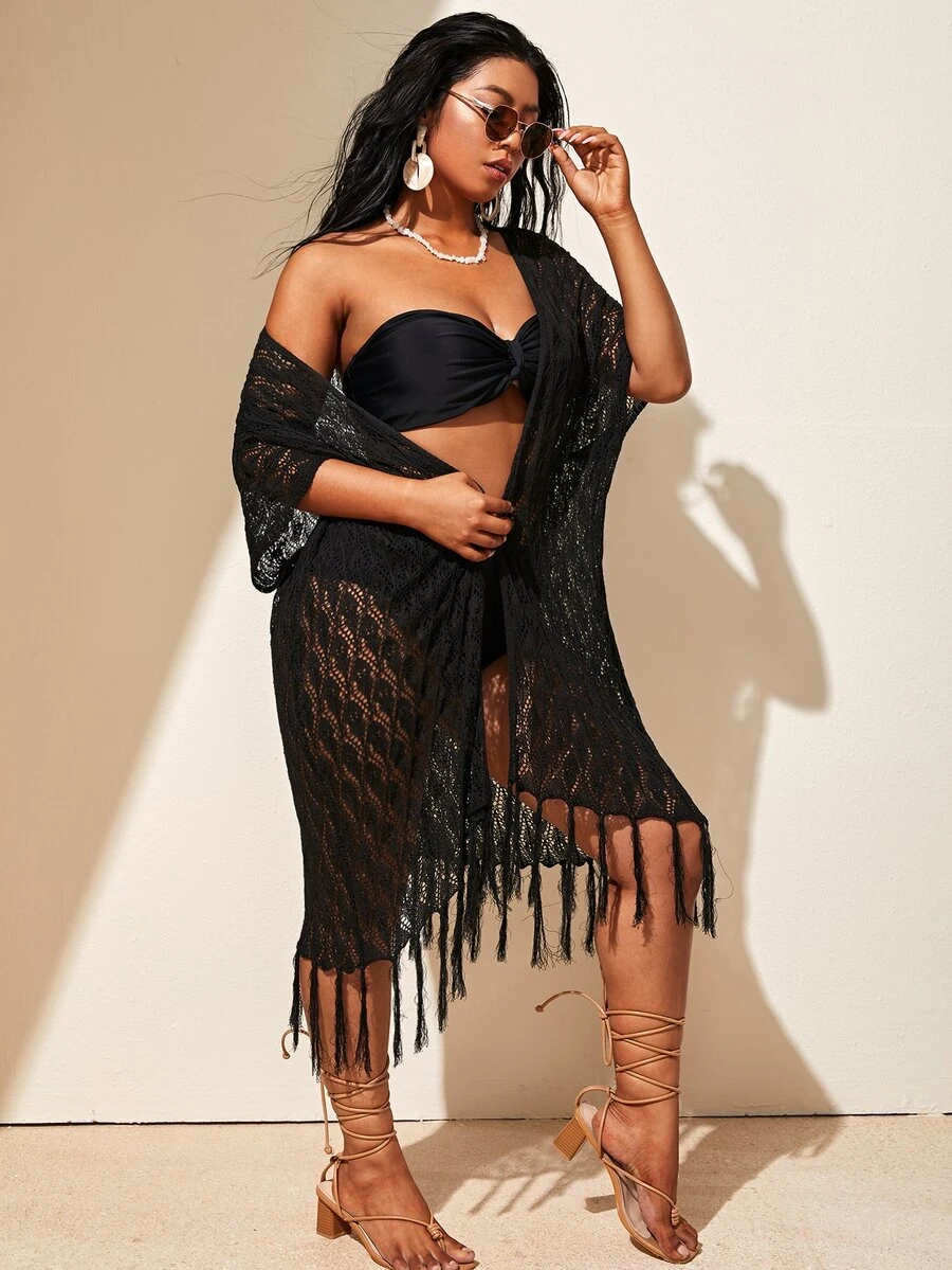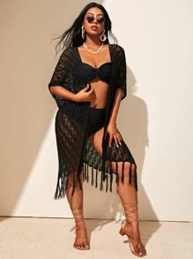 Kimono unicolor bajo con fleco transparente