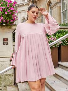 Vestido babydoll con fruncido unicolor