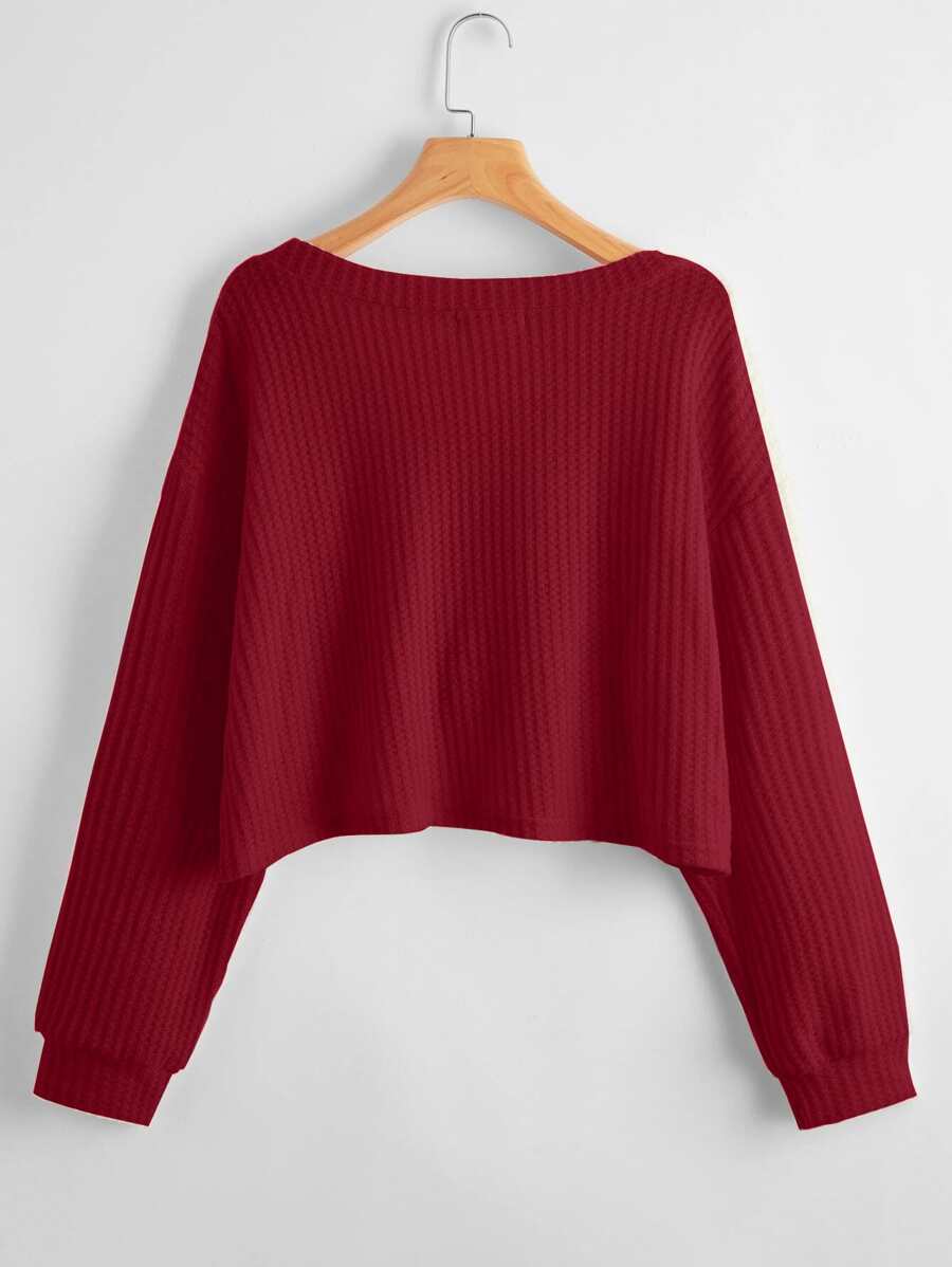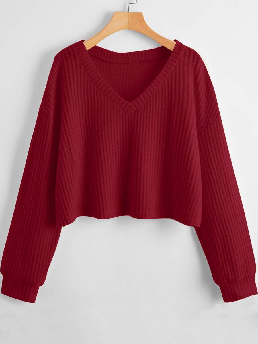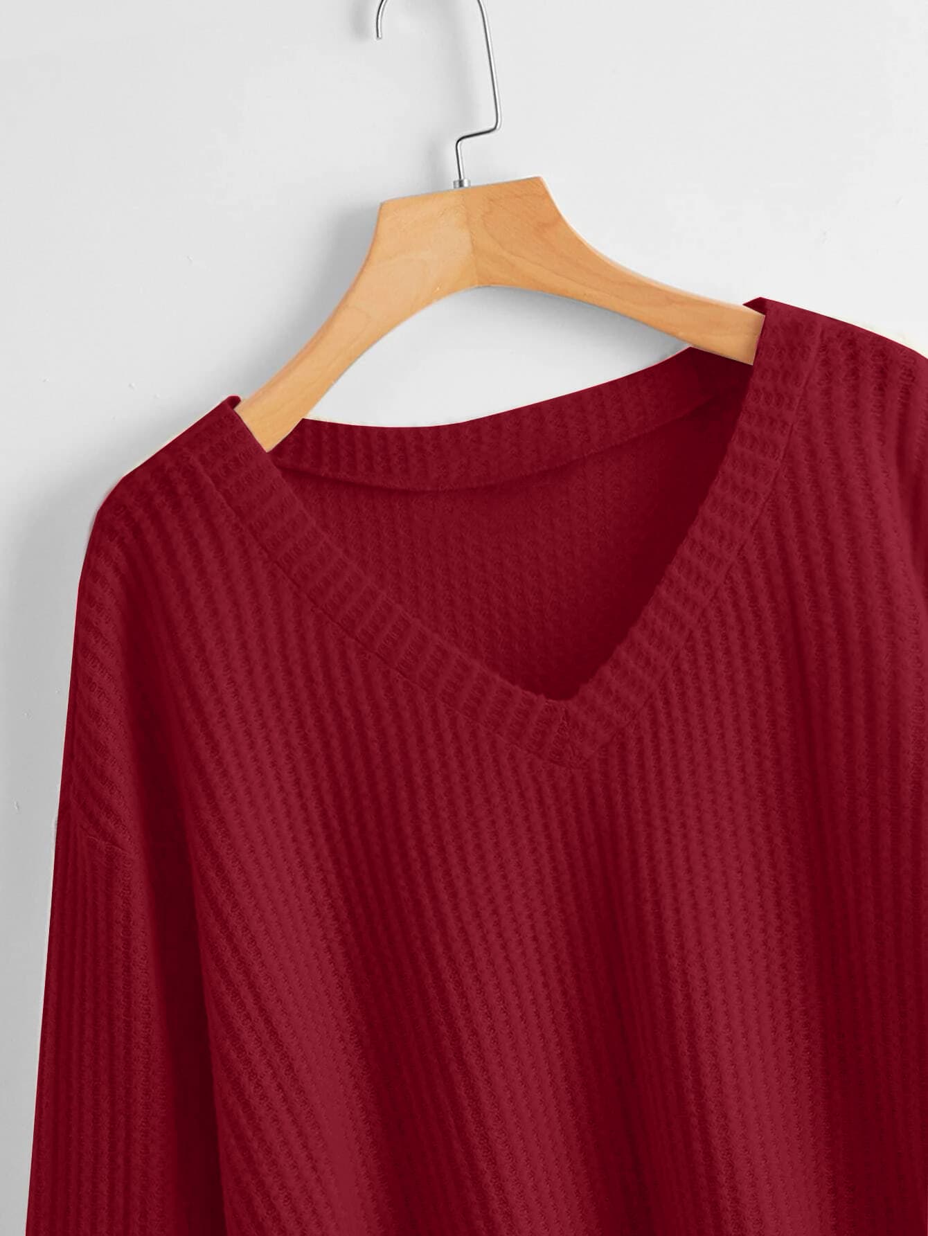 Camiseta unicolor escote V tejido waffle