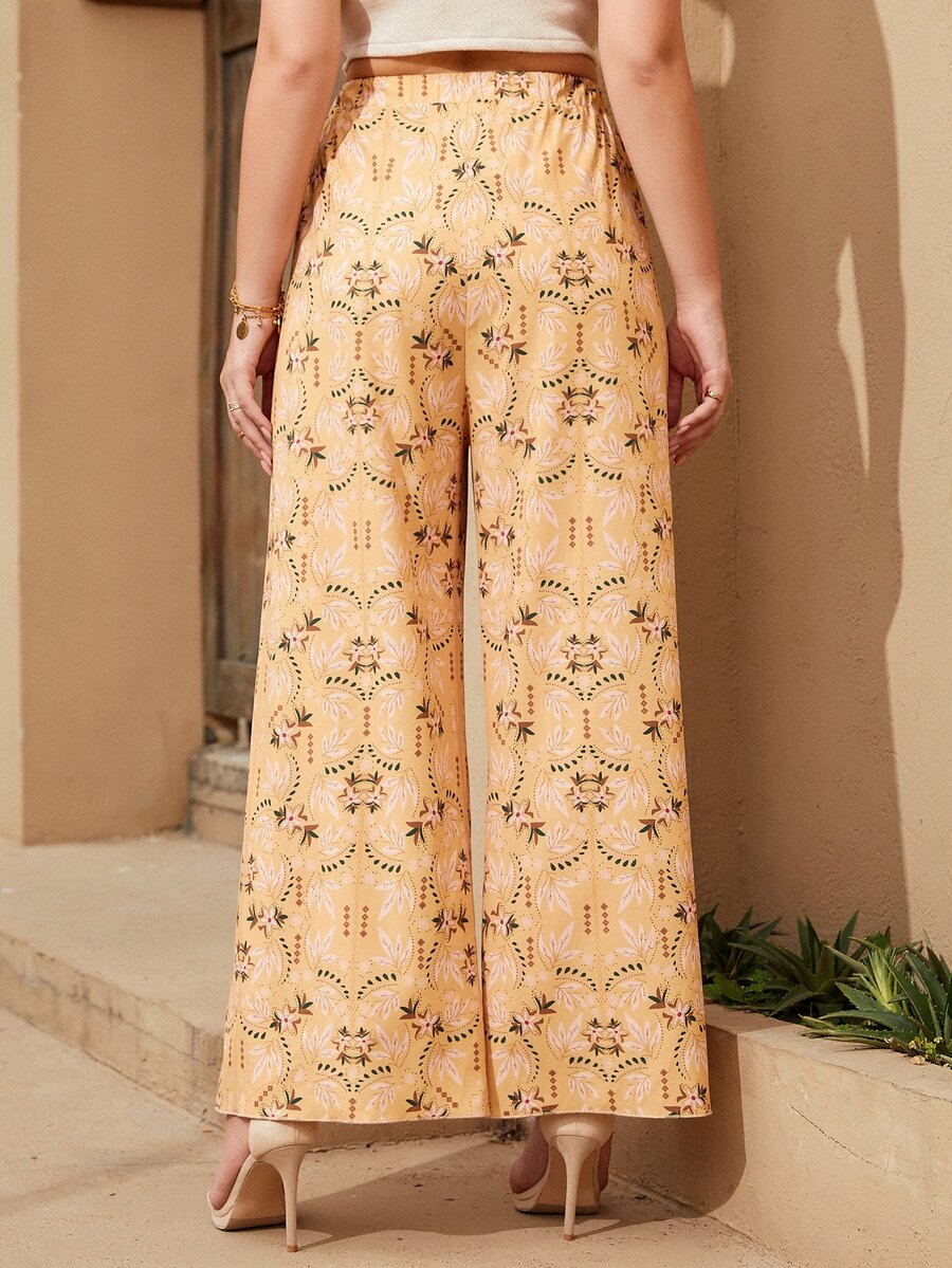 Pantalones de pierna ancha con estampado floral de muslo con abertura