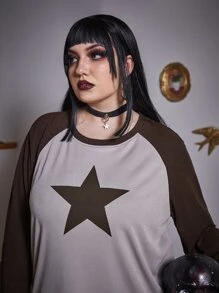 Grunge Punk Camiseta con estampado de estrella de manga raglán
